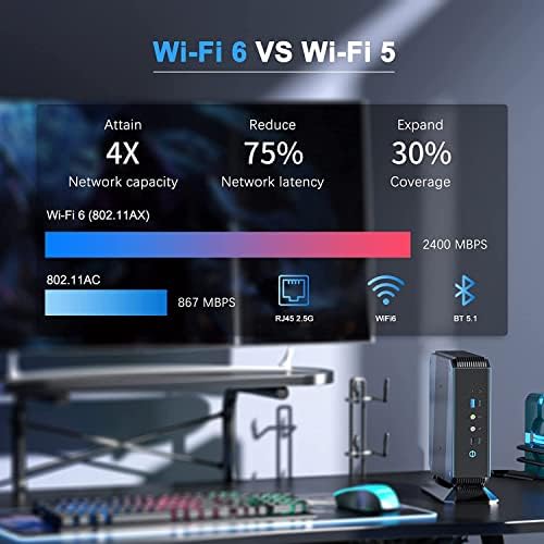 【Excellent connectivity】HX90 desktop PC adopts M.2 2230 WIFI and supports WiFi 6 Technology (802.11ax) , integrated Bluetooth 5.2 module.Equipped with a 2.5Gbps LAN port, the measured read and write speed of a traditional Gigabit network is about 120MB/sec. 2.5Gbps LAN is 2.5 times faster than that .allows you to use more networks such as the Software Routers (OpenWRT / DD-WRT / Tomato, etc.), firewall, NAT, network isolation, etc.