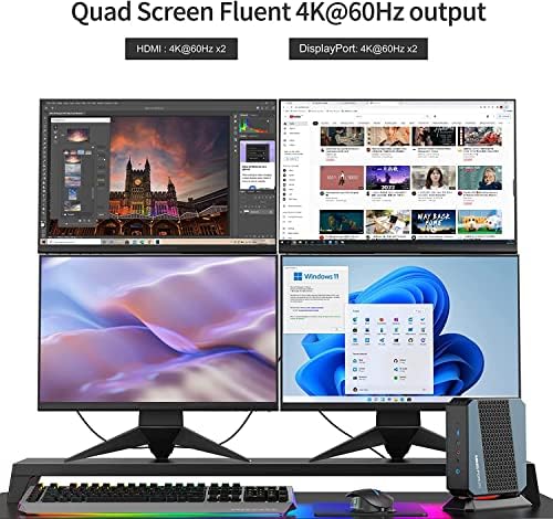 【Support 4K multi-Screen output】HX90 mini desktop computer With quad video output interfaces, HDMI*2&DP*2.You can drive quad independent 4K@60Hz displays for extreme productivity. It provides a larger and wider field of view and improves work efficiency. By building a multi-monitor environment, it is possible to improve work efficiency and immersive feeling during game play.