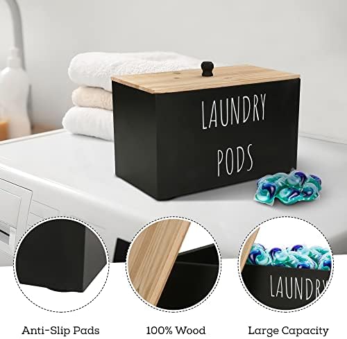 Laundry Pods Holder, Detergent Storage Pod Container, Wooden Container with Lid – Wood Laundry Room Décor, Space Saving Organization Box, Farmhouse Décor, Laundry Accessories Storing Bin (black)