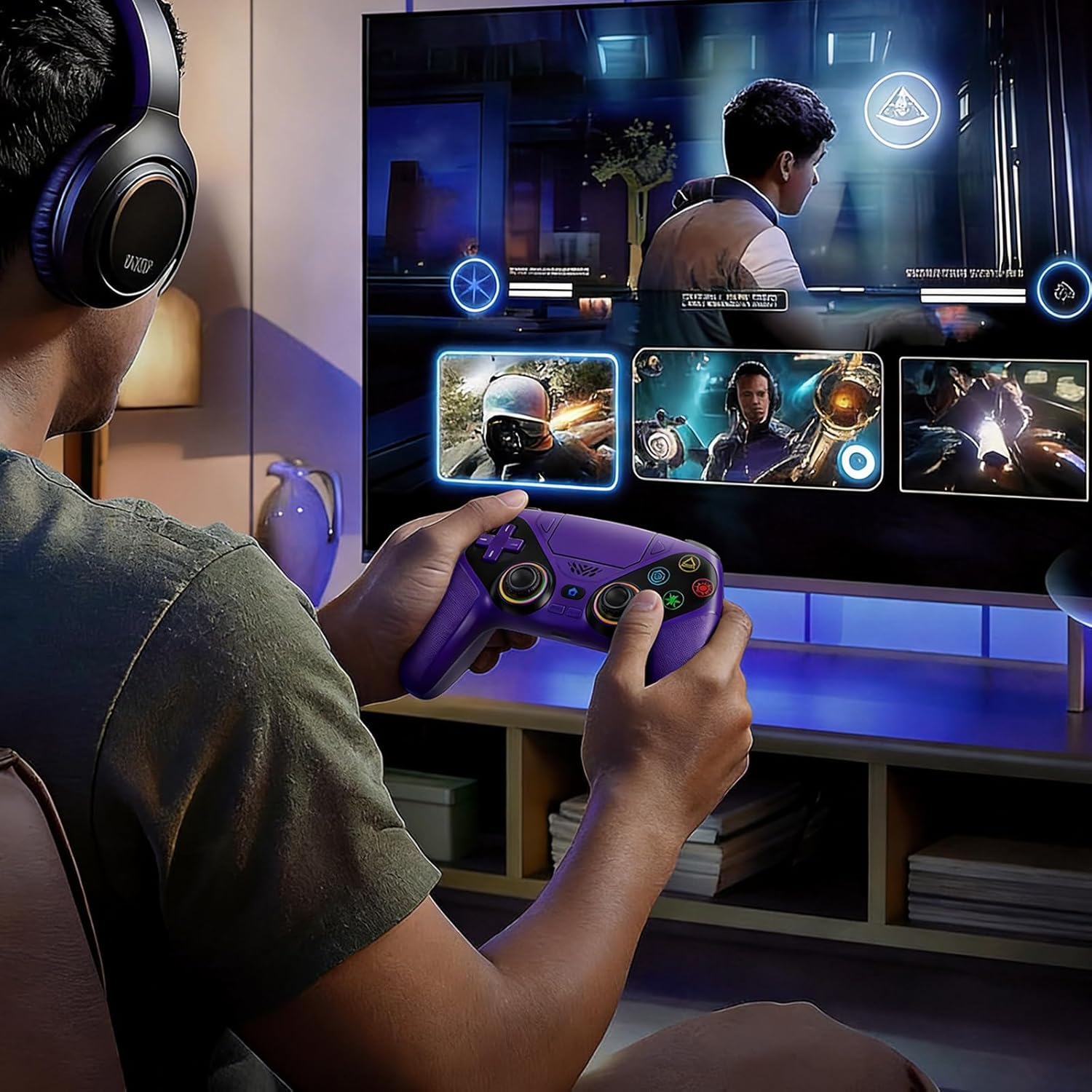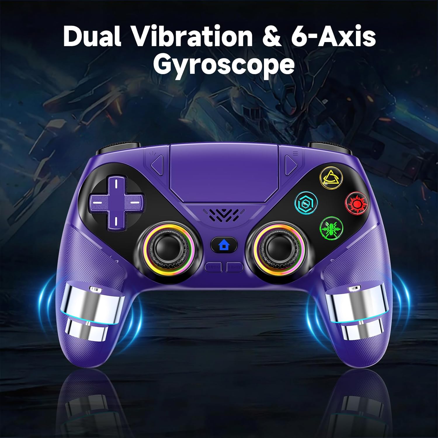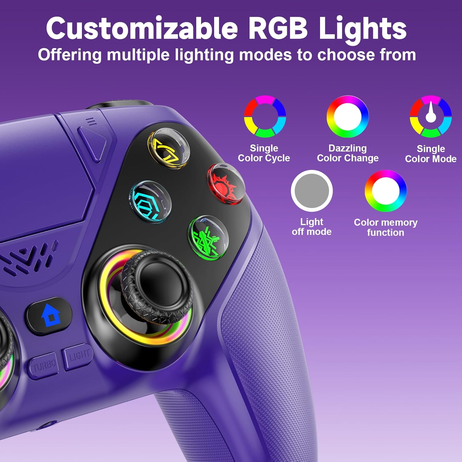 LENISUOLE Wireless Controller for PS5/PlayStation 5 & PC – Purple, Bluetooth Gamepad with Turbo, 6-Axis Motion Sensor, Programmable Buttons, RGB Lighting, 3.5mm Audio Jack, 1000mAh Battery
