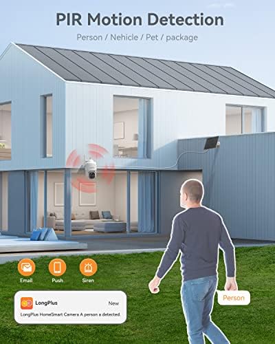 🏃【PIR Motion Detection & Alert】: Stay informed of any suspicious activity in your home with LongPlus outdoor security camera. The advanced AI technology can distinguish between people, pets, and vehicles, and send notifications when motion is detected. The outdoor security camera alarm and flash can effectively deter thieves, ensuring your family’s safety.