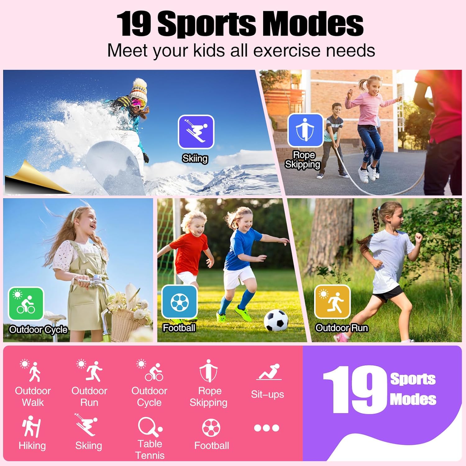 meoonley Kids Watch for Girls Boys with IP68 Waterproof, Girls Watch with 19 Sports Modes, Sleep Tracking, Pedometer, Stopwatch, Kids Activity Tracker, Birthday Gifts for Girls Age 6-15 Years Old