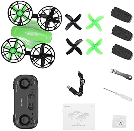 【MINI AND PORTABLE】The mini drone is Pocket-Size, portable to wherever you want to go in your pocket or any bags. The package includes green mini drone with 4 blades and shield, 3 Modular Batteries, remote control, instructions .etc.