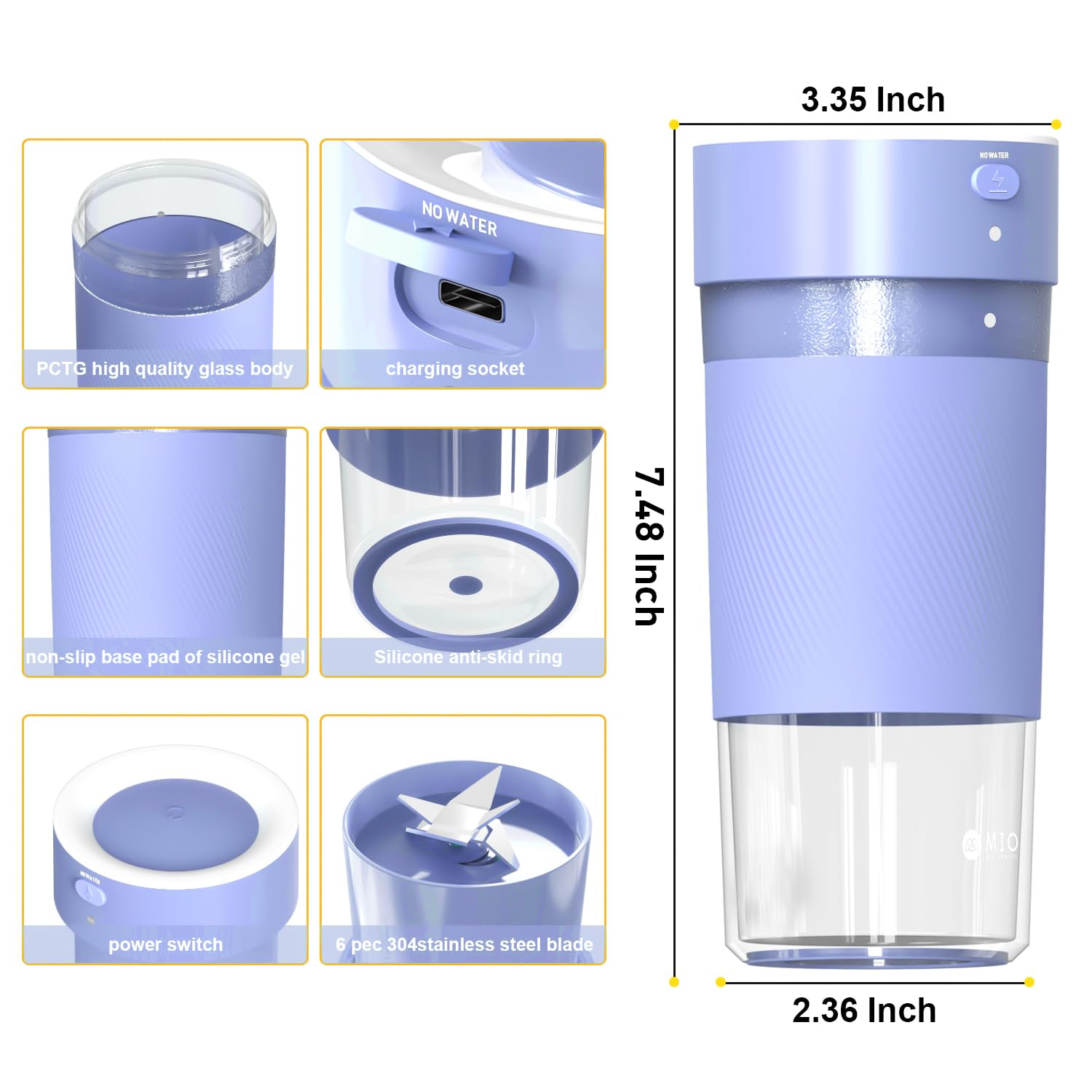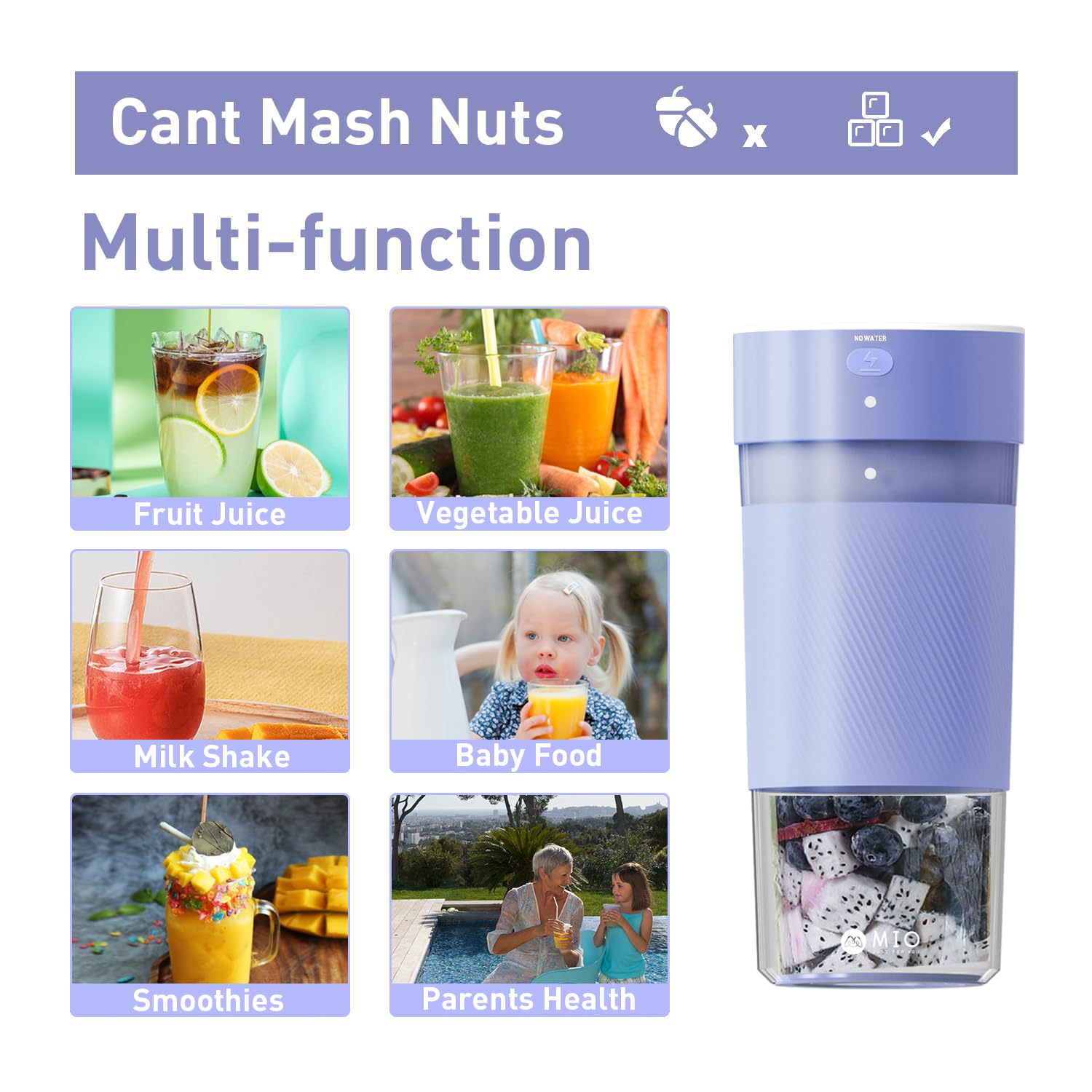 MIO Portable Blender for Smoothies, 10 oz Mini Personal USB-C Rechargeable Cordless Smoothie Maker & Handheld Protein Shake Blender, Quiet Small Travel Juicer for Office, Gym, Kitchen(Purple)