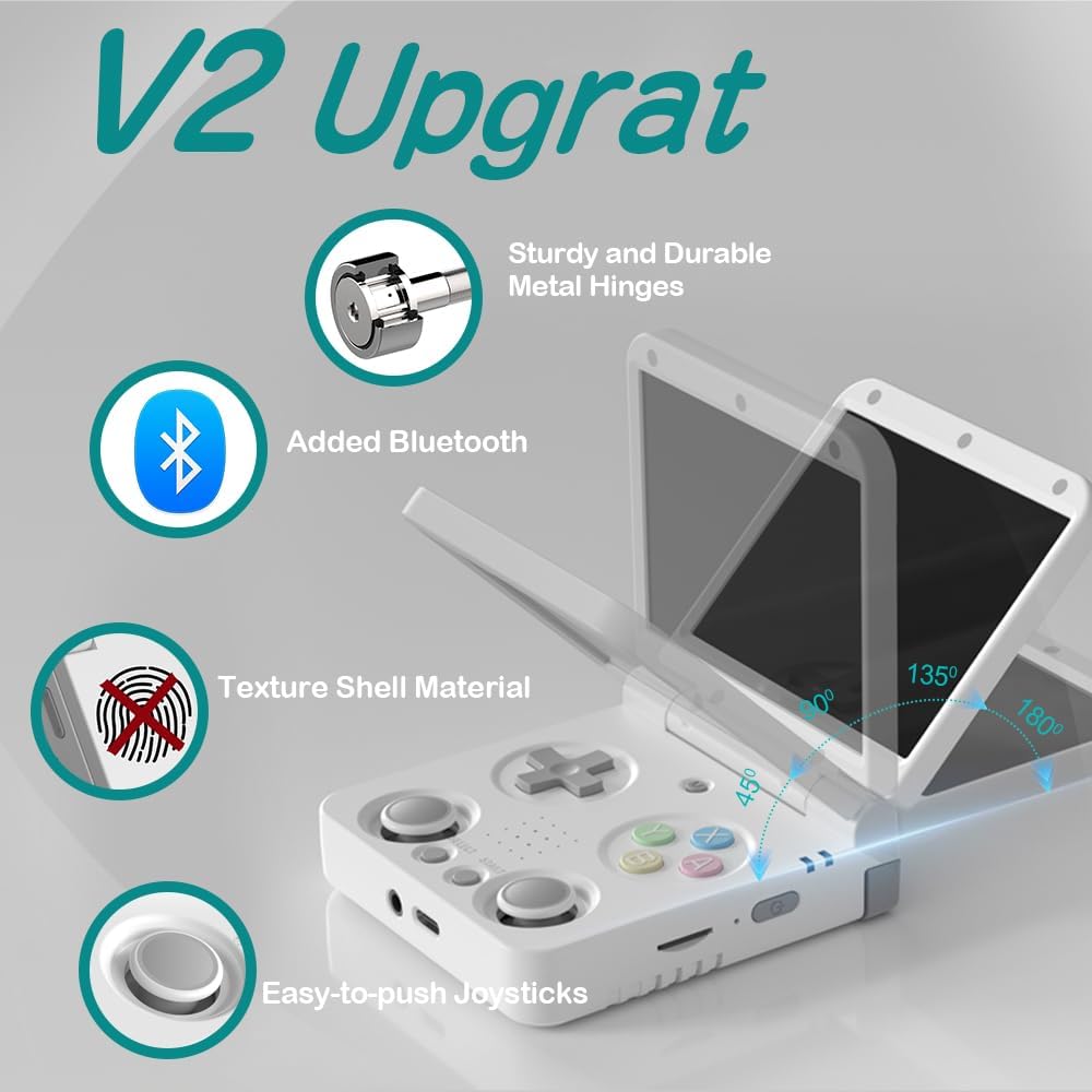 Miyoo Flip V2 Retro Handheld Gaming Console with Quiet Hinge, 3.5″ 640*480 IPS Screen Dual System with 30+ Emulator Portable Video Game Hand Held Console with HDMI WiFi OTG Bluetooth, White