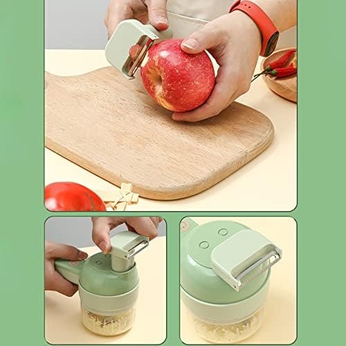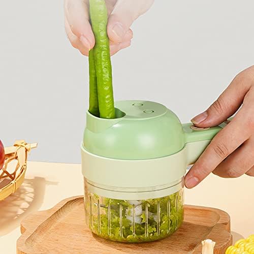 Multifunction Wireless Electric Grinder 4 in 1 Handheld Electric Vegetable Cutter Set Garlic Mud Masher Garlic Chopper Cutting (Green)
