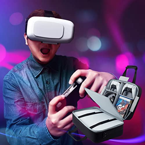 🎮 【PS5 Case Large Capacity】: PS5 travel case with soft detachable divider can be divided into 2 or 4 or 6 compartments preventing squeezing. PS5 case travel bag is compatible with PS5 console, controller, headset, disk and other gaming accessories. The front 2 pocket of the large PS5 bag can stroage something personal items.