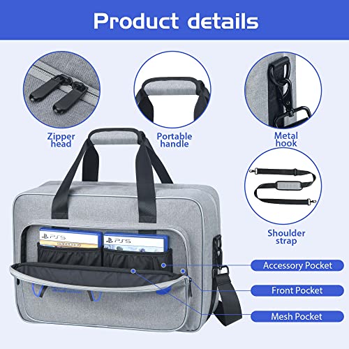 【🎮 PS5 Travel bag Comfortable Carry】: Playstation 5 travel case is attached with sturdy handles and a detachable shoulder strap. Portable bag for PS5 with the back strap, easy to fix the luggage trolley. You can make it as a tote bag, shoulder bag or slide on a suitcase. The PS5 case is convenient to take your machine and accessories to travel, party or on holiday, enjoy the fun of gaming.