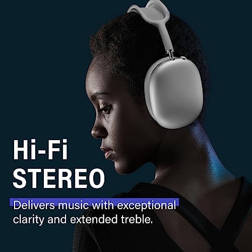 Peakfun Wireless Headphones Over-Ear Bluetooth Adjustable Headphones 42 Hours of Listening Time Volume Control, Fitting in Gaming/Running/Sports Headphones for iPhone/Android/Samsung – Silver