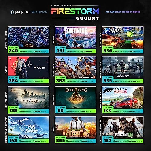 {PERFORMANCE TESTED IN-HOUSE} Periphio is one of the few PC building companies in the world to share real world performance results from in-house testing; check out benchmark-videos and infographics; See guaranteed performance in the image gallery! Future drivers will continue to improve your hardware!
