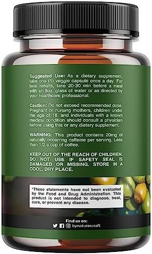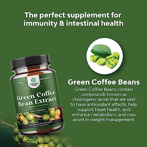 Pure Green Coffee Bean Extract – Super Energizing Green Coffee Extract with 50% Chlorogenic Acid for Antioxidant Heart Health Mental Focus and Size Reduction – Natural Energy Supplement for Adults