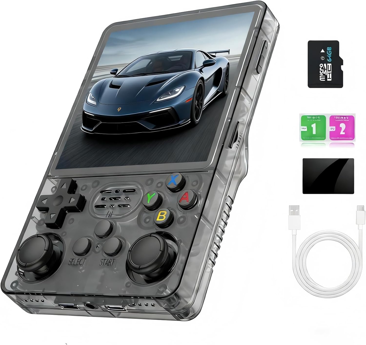 R36plus Handheld Game Console, Portable Retro Gaming Console 4.0″ IPS Screen, 64GB, Pre-Installed 15000+ Games, ArkOS System, 26+ Emulators, Game Save, Clear Black