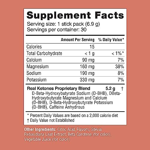 5 grams of ketones, 770mg electrolytes, zero sugar, less than 1 gram carbs 5 grams of ketones, 770mg electrolytes, zero sugar, less than 1 gram carbs