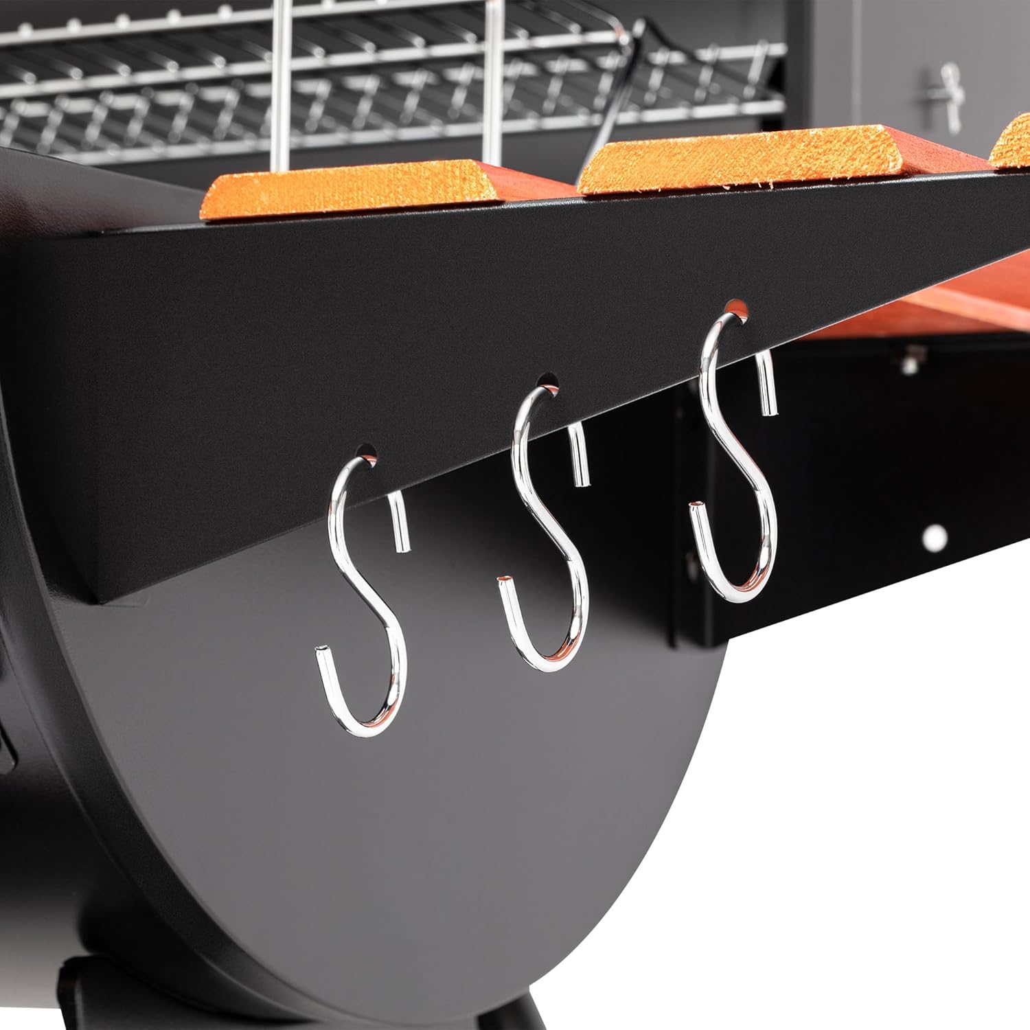 Main Smoking Area: 443 sq. in. porcelain-enameled steel wire cooking grates with 184 sq. in. chrome-plated steel wire warming rack offer enough space to cook large cuts of meat.