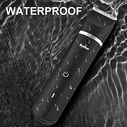 Scdom Men’s Pubic Hair Trimmer, Body Hair Trimmer for Men with USB Charging Dock for Beard, Pubic Area, Nose. Replaceable Ceramic Blade Heads Wet/Dry Waterproof Cordless Body Groomer for Men