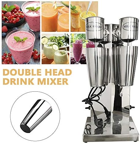 SEANESZTI Commercial Milk Shaking Machine, 110V Double Heads Electric Milkshake Maker, 2 Speed Adjustable 18000RMP Stainless Steel Electric Beverage Blender or Protein Shakes, Ice Cream and Cocktails