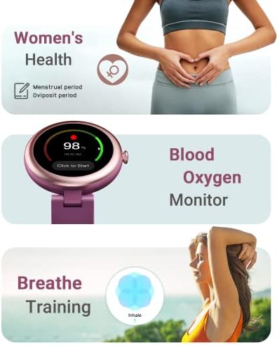 【24 Hrs Blood Oxygen/Heart Rate Monitor & Sleep Tracker】: This women’s smart watch can detect and analyze your 24/7 Heart Rate, Blood Oxygen Saturation and Sleep Duration/Quality, as well as recording Female Menstrual Period. Help you to build a healthier, more active lifestyle.