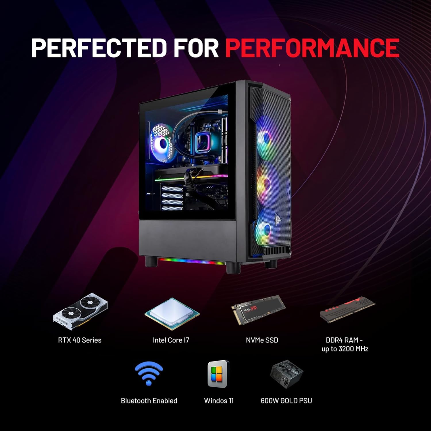 This powerful gaming PC is capable of running all your favorite games such as Call of Duty Warzone, Fortnite, Escape from Tarkov, Grand Theft Auto V, Valorant, World of Warcraft, League of Legends, Apex Legends, Roblox, PLAYERUNKNOWN’s Battlegrounds, Overwatch 2, Counter-Strike 2, Battlefield V, New World, Minecraft, Elden Ring, Rocket League, Baldur’s Gate 3, Dota 2, HELLDIVERS 2, Monster Hunter, Palworld, Terraria, Rainbow Six Siege, Dragon’s Dogma 2, and more at Ultra settings, detailed 1080p Full HD resolution, and smooth 60 plus FPS gameplay.