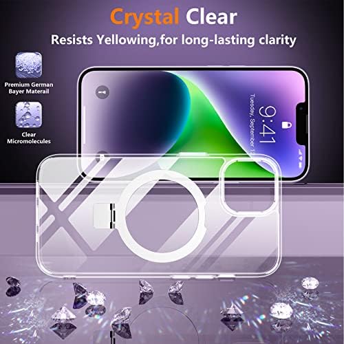 SPIDERCASE for iPhone 14 Plus Case with Magnetic Invisible Stand,[Compatible for Magsafe][Military Grade Shockproof][2 Pack Tempered Glass Screen Protector] Crystal Clear Slim Phone Case, Clear