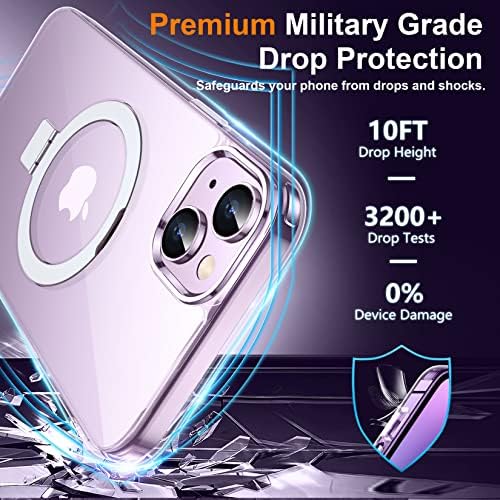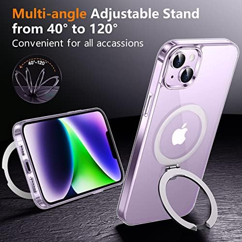 【Built-in Multi-function Magnetic Invisible Stand】This iPhone 14 Plus Case is an excellent 3-way sturdy & functional stand case with a built-in handy stand made of light and solid Aerospace-grade aluminum.The built-in aluminum magnetic ring can stand steadily in portrait or landscape mode when it opens, and is totally invisible on the back (not affect the use of MagSafe accessories at all) when it folds.You can adjust it between 40°~120° as your wish,it’s good to use on the desk or wherever when you work or watch your favorite TV shows!