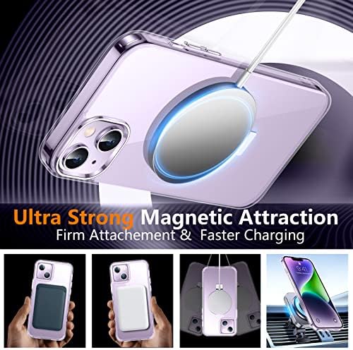 【Super Stronger Magnetic】This iPhone 14 Plus Case with a built-in magnetic ring that aligns perfectly with MagSafe chargers, offers a stronger attach experience and faster wireless charging. Compatible with all MagSafe accessories and third-party Qi-certified wireless chargers (such as car wireless charger,wireless power banks,wireless charger,magnetic wallets,etc).Powerful magnets no longer worry about shaking your phone off a wireless accessory,providing fast charging at home,in the office or on the go.