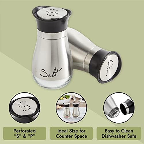 Design: This salt and pepper set is ideal for cooking, grilling, and dining; the top of the screw-off caps are perforated with classy “S” and “P” pour holes that help distribute seasoning