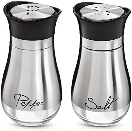 The Perfect Pair: In this salt shakers for kitchen set, you will receive 1 stainless steel salt dispenser and 1 stainless steel pepper dispenser with distinguishing designs