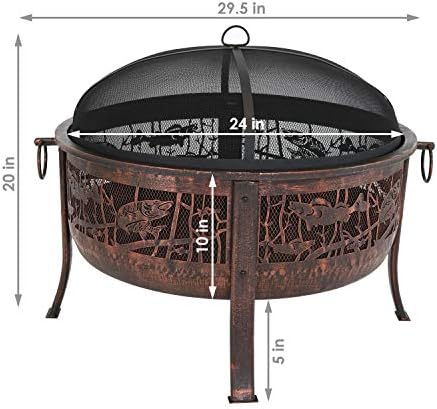 Heavy duty and rust resistant: This patio fire pit is made from durable thick steel metal and finished with a high-temperature bronze paint finish for long-lasting quality and added resistance to rust. This portable fire pit can be moved anywhere and has a decorative fishing theme cutout that complements any outdoor or cabin decor.