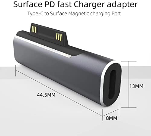 Product Description Surface Connector to USB-C Charging adapter, DC15V 102W Type C Female to Surface male converter for Microsoft Pro7/6/5/4 Surface Laptop 3/2/1, Surface Go, Surface book Specification: Product Output: 15V 3A 102W Material: PC+metal interface 1: suface male interface 2: USB C female [Charging only, not suitable for data transmit] Package includ: 1*Surface Connector to USB-C Charging adapter