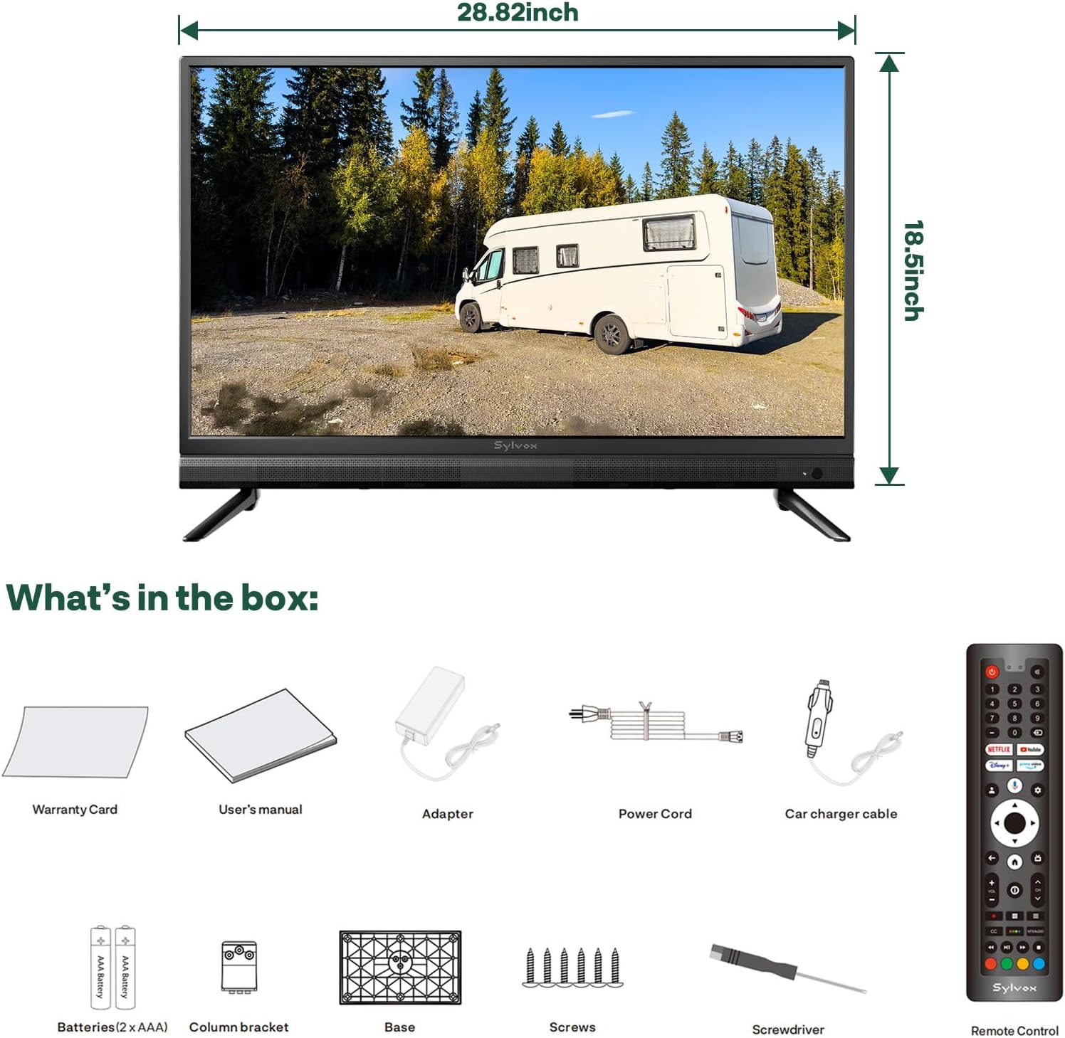 SYLVOX 32-Inch RV TV, 12 Volt Smart TV with Google OS, 178° Wide Viewing, HDMI/USB Ports, AC/DC Power, Voltage Protection for Camper, Motorhome and RV Use