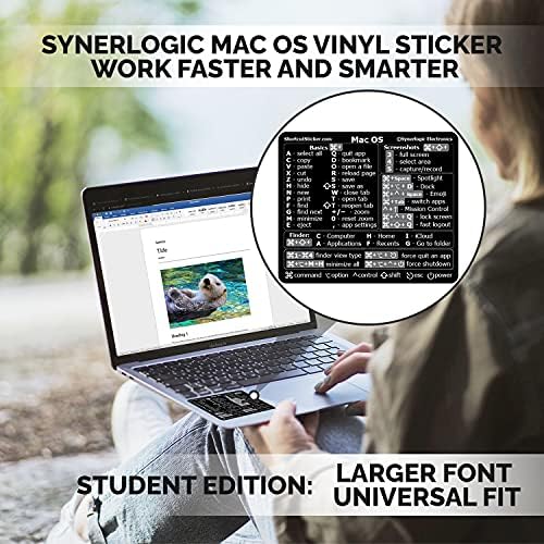 SYNERLOGIC (Universal for Mac) Mac OS Reference Keyboard Shortcut Sticker, No-Residue Laminated Vinyl – for Any MacBook Air/Pro/iMac/Mini (Black)