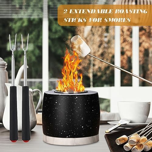 ✨【Great As S’mores Maker, Practical for Many Occasions】Our table fire pit comes with two extendable stainless steel forks, can also be used as an indoor/outdoor smores maker kit, allowing you to gather together to toast marshmallows and make s’mores, turning any evening into a fun-filled event. Imagine friends chatting and roasting marshmallows in the courtyard, or taking out a small fireplace to roast marshmallows at the campsite, it’s so fun and really happy !