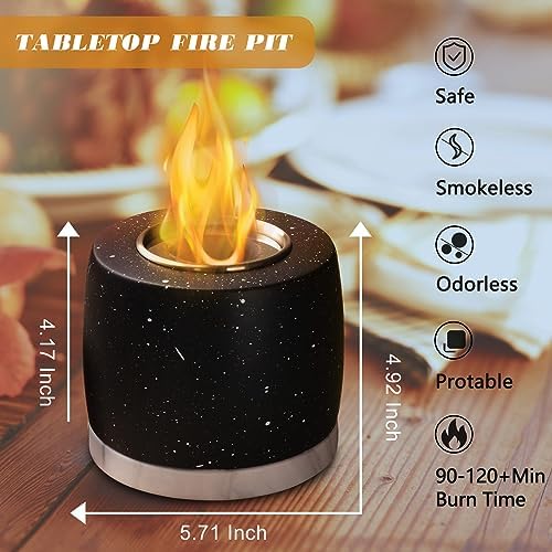 🔮【Long Burning Time, Safe & Smokeless & Odorless】It’s incredibly easy to use – just add 70%/91% or higher isopropyl alcohol as fuel and light it up when you’re ready. Our mini fire pit for table offers a clean, smokeless, and odorless burn. It can burn for up to 90-120+ minutes.Two-layer stainless steel combustion chamber for better heat insulation and safety. It is easy to extinguish, just use the extinguishing lid to put the fire.