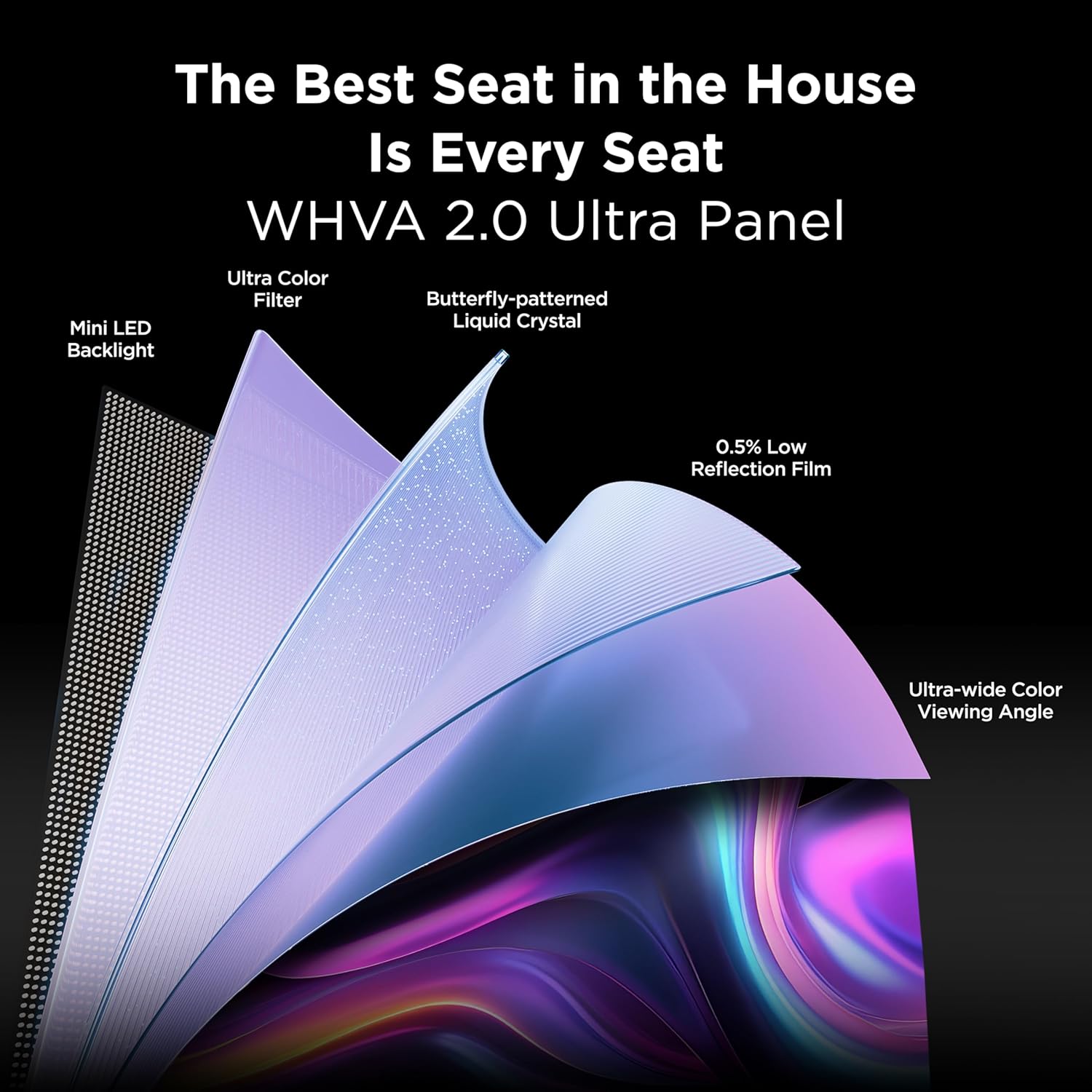 TCL Enhanced Halo Control System – Precise Dimming: An advanced Technology Suite that includes the Super High Energy LED Microchip, Super Condensed Micro Lens, Super Micro-OD Reduced Optical Distance, WHVA 2.0 Ultra Panel, Super Quantum Crystals, Fast Transient Response, 26-bit Dynamic Dimming, and for Stunning “Halo-Free” Images.