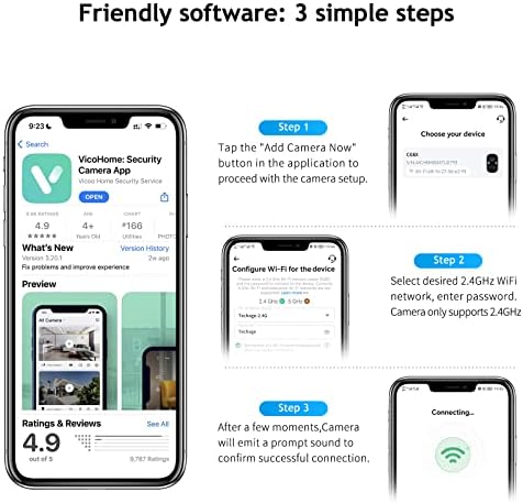 【Smart Spotlight Siren Alarm】When motion is detected in the monitoring area, the wireless camera will automatically turn on the spotlight and siren alarm for warning. Accurate real-time notification will send to VicoHome App and the recorded video will store on MicroSD card or Cloud. Work with Alexa.