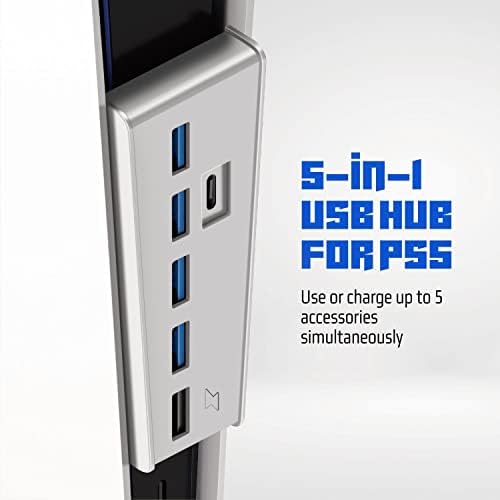 6 port PS5 extension hub with 4 USB 2.0 ports, 1 USB A charging port with 900mA output current, and 1 USB TYPE-C 3.1 high-speed port. Ultra-Slim Data USB Hub for PS5 – An incredibly compact design saves on clutter, leaving room for all those accessories you’ll be plugging in.