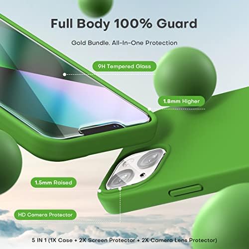 TOCOL [5 in 1 for iPhone 13 Case, with 2 Pack Screen Protector + 2 Pack Camera Lens Protector, Slim Liquid Silicone Phone Case iPhone 13 6.1 Inch, [Anti-Scratch] [Drop Protection], Greenery