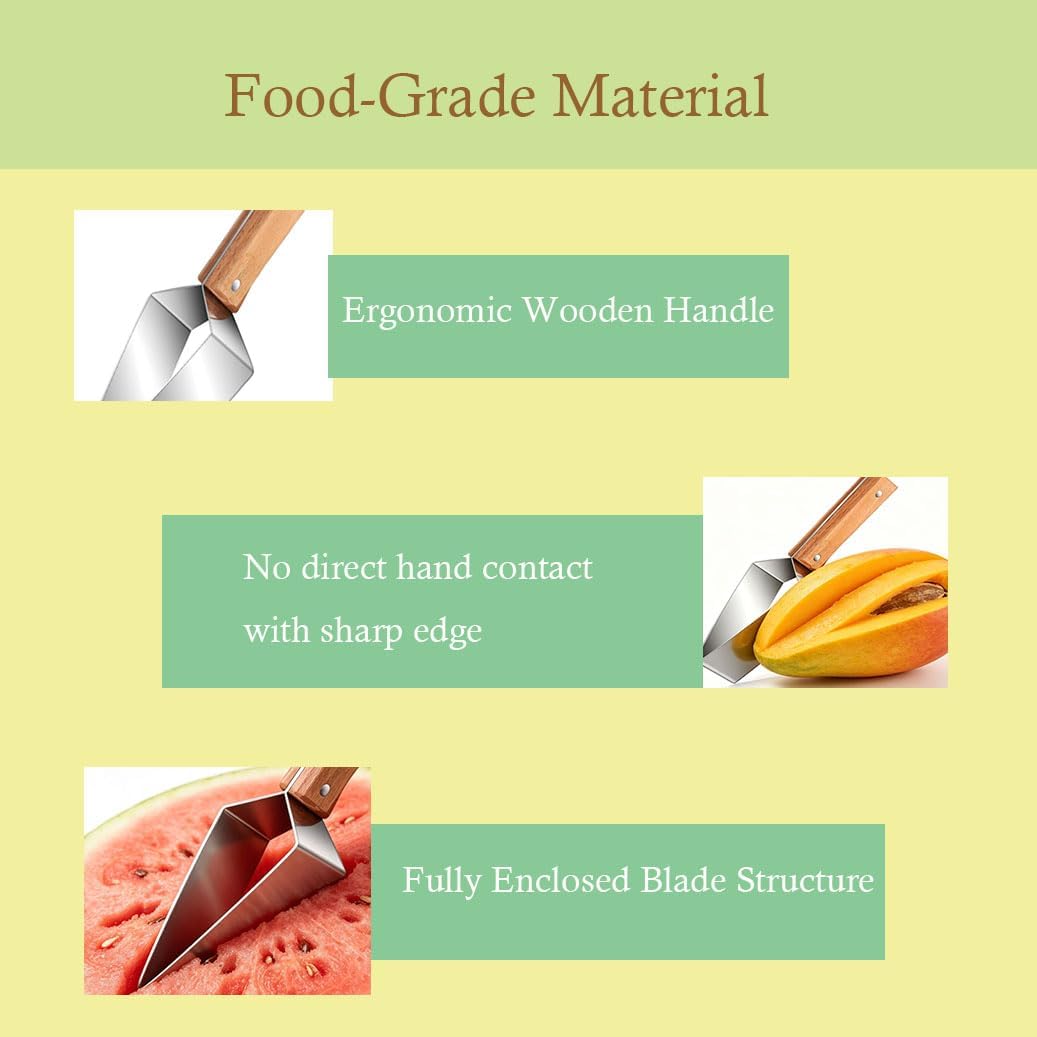 Triangle Watermelon Cutter, Wooden Handle & Stainless Steel Melon Slicer, Fruit Cutter Slicer for Home Kitchen Camping Picnic (1 Pcs)