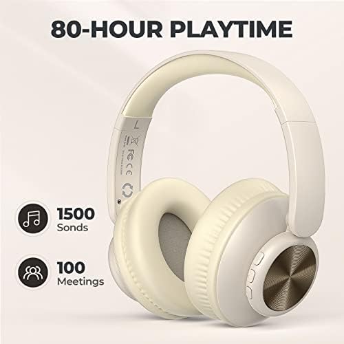 V8 Wireless Bluetooth Headphones Over Ear, 80 Hours Playtime Wireless Headphones with Deep Bass,Lightweight Foldable Headphones Built-in Mic,HiFi Stereo Sound for Travel Work Laptop PC Cellphone