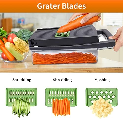 Vegetable Chopper, 12 in 1 Food Chopper Veggie Chopper Vegetable Cutter Onion Chopper Vegetable Slicer Mandolin Slicer for Kitchen Vegetable Chopper with Container 8 Blades Garlic Chopper Slicer