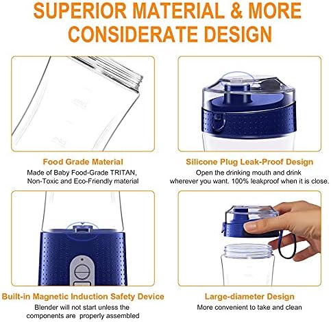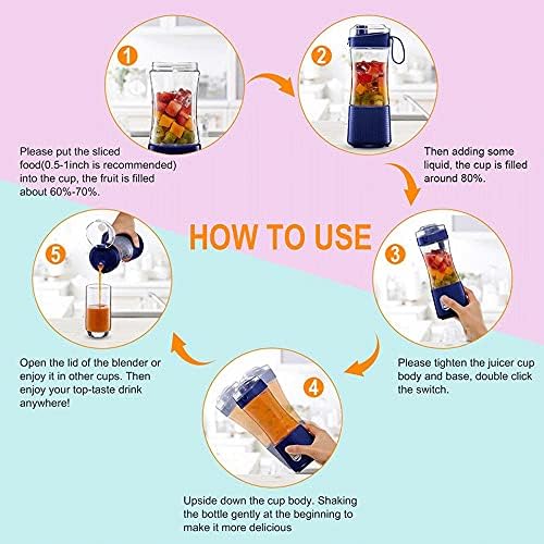 WASHLA Blender Cup Mini Blender Portable Smoothie Maker USB Electric Orange Juicer Machine Cup for Personal Fruit Mixer Juice Extractor (Color : Blue)