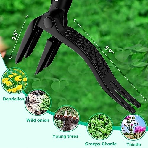 No Snap and No Slip: Steel 4-claw design works for larger, thinner, skinny weeds and smallish roots without snapping or slipping. Ideal weeding tool for getting rid of unwanted dandelion, wild onion,crabgrass,creepy charlie,thistles,young mulberry trees etc.