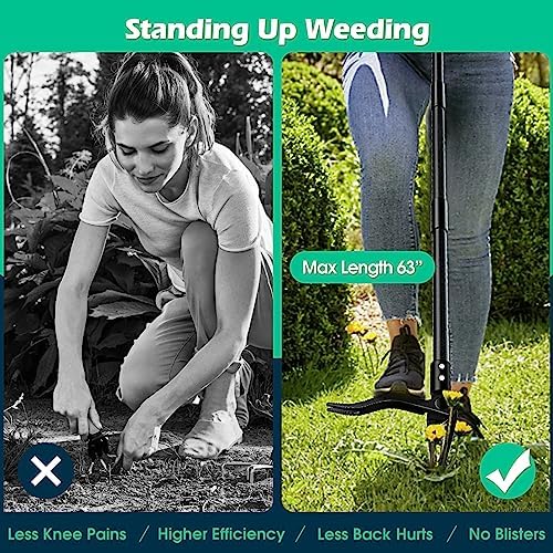 31-62” Standing Weed Puller: You can customize the length of the handle by adding more poles. Longer durable handle of this stand up weeder picker fits people of different height, saving their back and yard without crawling on their hands and knees