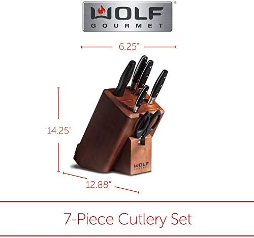 Wolf Gourmet 7 Piece Cutlery Knife Set, Hardwood Block, Forged High-Carbon Stainless Steel, Durable, Lifetime Limited Warranty (WGCU100S)