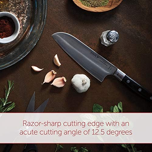 RAZOR SHARP. Each knife’s razor-sharp 12.5° edge angle is uniquely Wolf Gourmet, since our signature stainless steel allows us to achieve excellent edge performance, hardness, and corrosion resistance.
