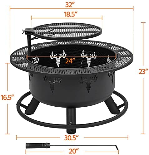 Yaheetech 32in Fire Pit Outdoor Wood Burning Firepits Outdoor Fireplace with 18.5 Inch Swivel Cooking Grill Grate & Poker Fire Bowl for Camping, Backyard, BBQ, Garden, Bonfire