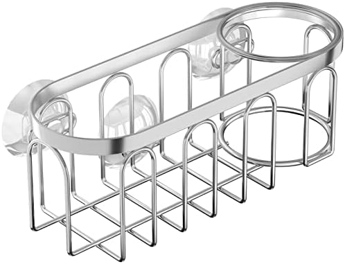Yazoni 2-in-1 Sponge Holder for Kitchen Sink, Suction Cup Sponge Rack Kitchen Sink Caddy, No Drill Rustproof Kitchen Sink Organizer for Place Dishwashing Brush Soap and Sponge (Silver)