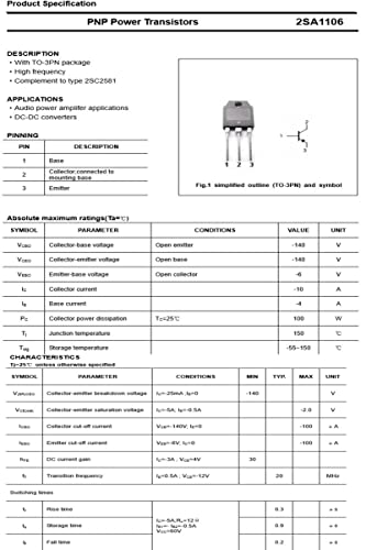 Item model number ‏ : ‎ 2SA1106 2SC2581