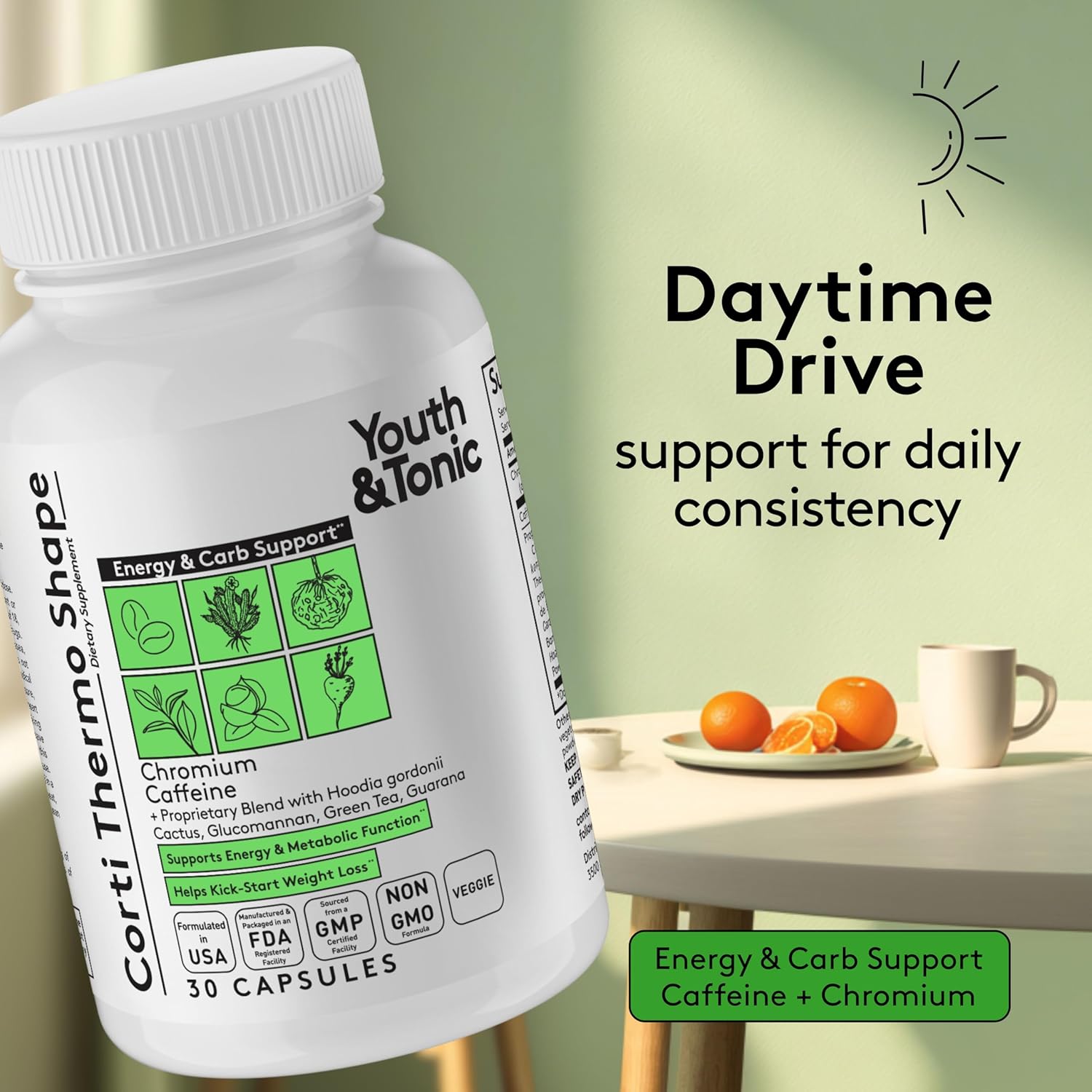 CORTITHERMO SHAPE (DAYTIME SUPPORT) – Designed for Energy & Carb Support, with caffeine + chromium to support energy & metabolic function—ideal for staying active and consistent on carb-heavy days.