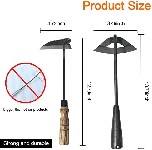 Versatile & Effortless: Easily Attach a Standard Wood Handle to the Hollow Hoe to Turn It Into a Weed Picker With a Long Handle. These Tools Can Be Used for Various Tasks, From Removing Grass to Planting Vegetables and Fruits, or Even Digging Holes. They Are a Breeze to Use, Compared to Traditional Pickaxes and Shovels.”